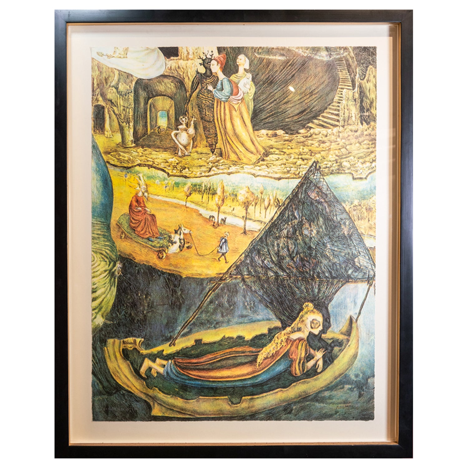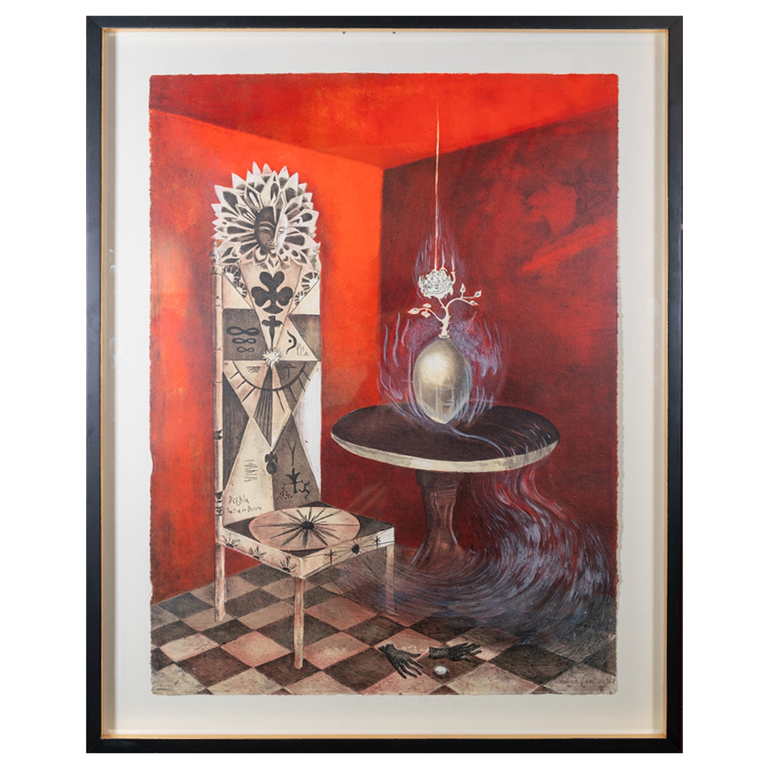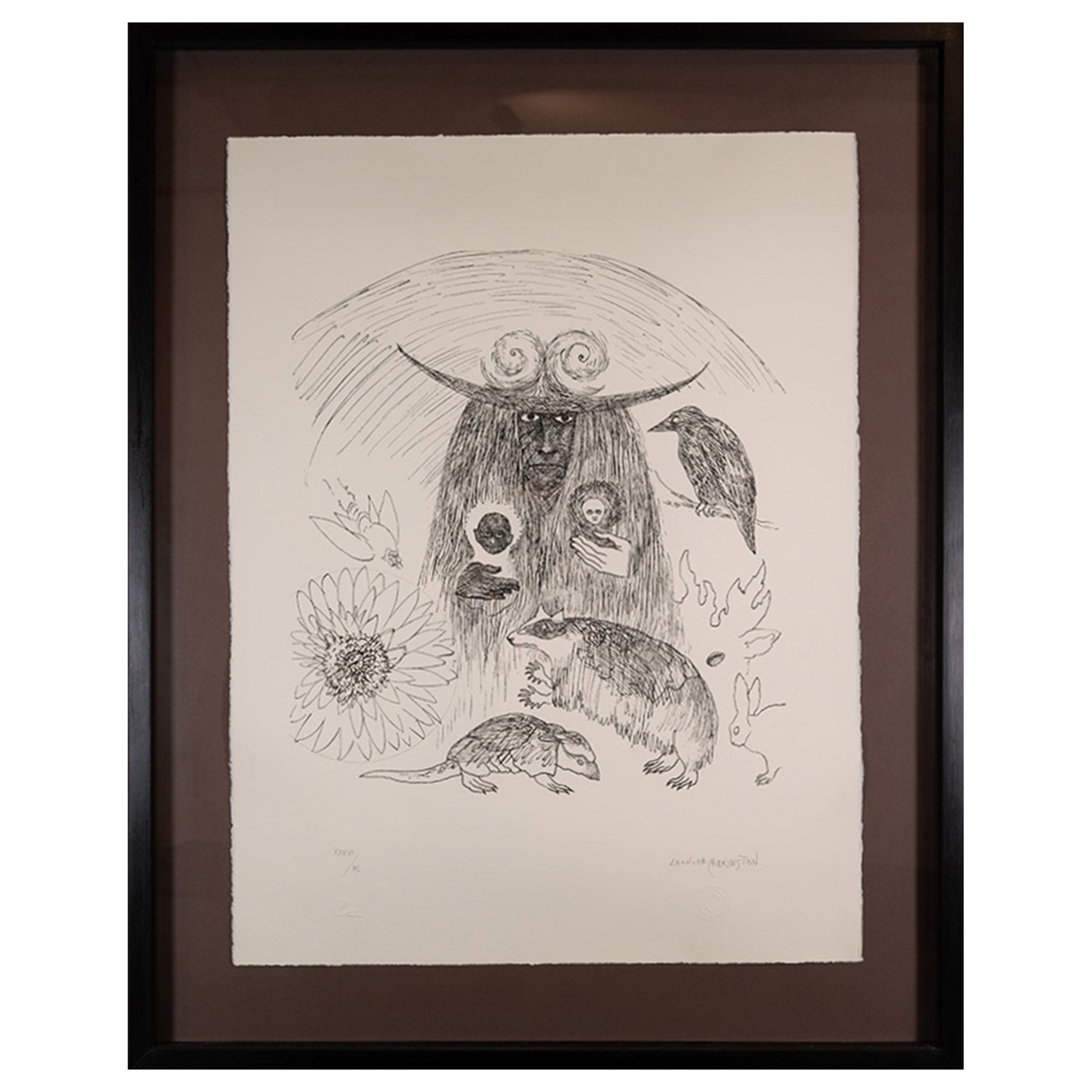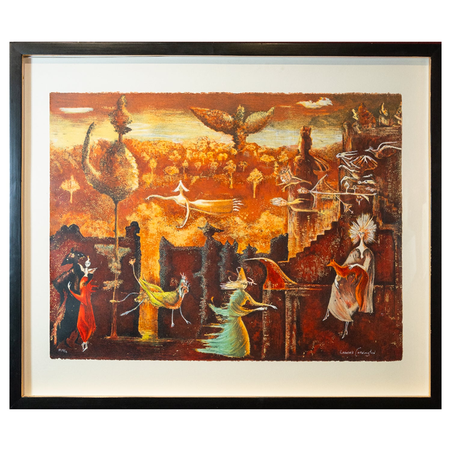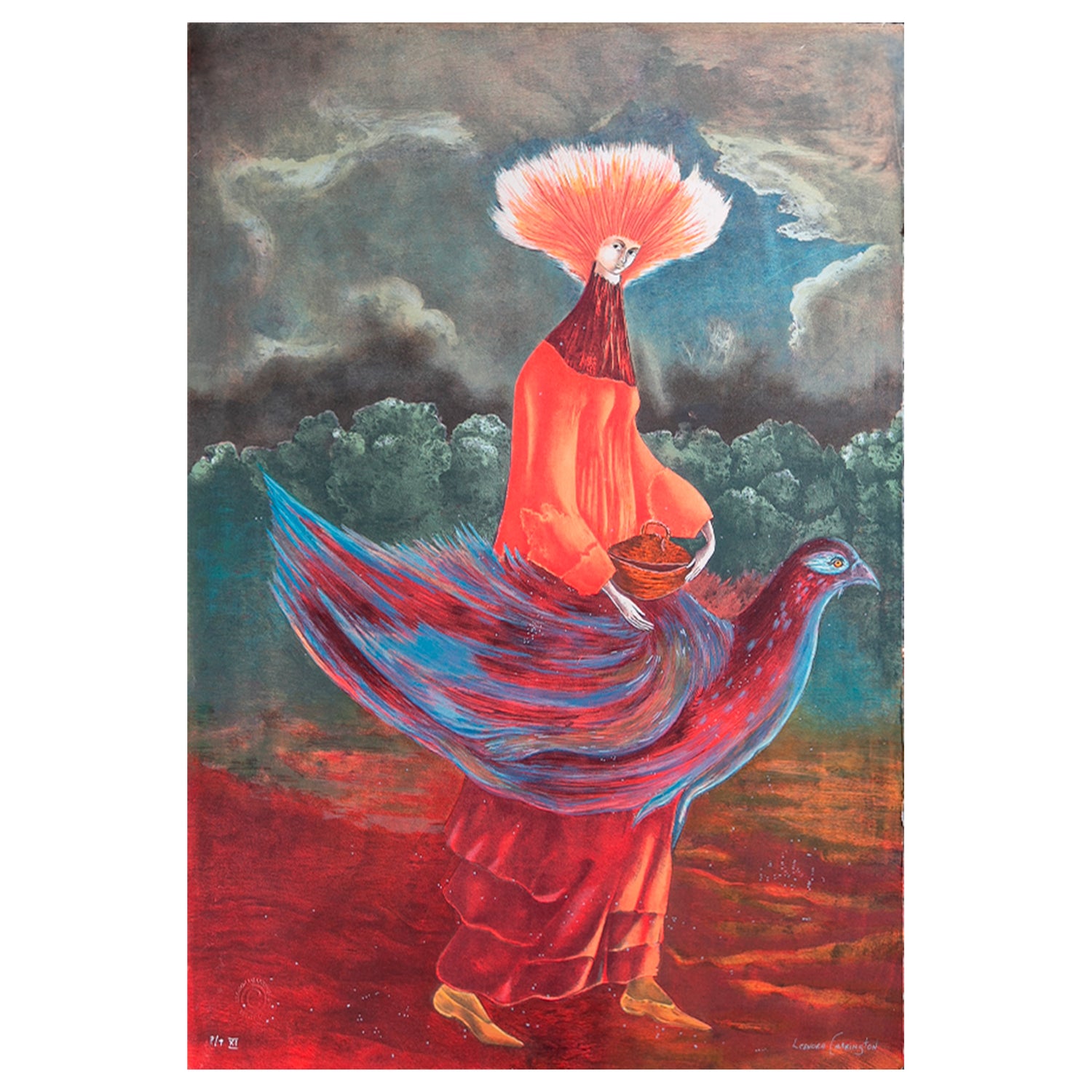 Leonora Carrington (UK, 1917 - Mexico City, 2011) Amid the machismo of Surrealism, Leonora Carrington painted dreamlike scenes that made space for feminine rhetoric within the movement. The artist created her first Surrealist works amid the fervor and angst of interwar Europe. She fled the continent during World War II and settled in Mexico City, helping build a vibrant artistic community and allowing her practice to blossom---she incorporated regional myths and Catholic imagery into her visions of a fantastical, matriarchal universe. Carrington exhibited extensively during her lifetime in cities such as Mexico City, New York, Tokyo, Los Angeles, Paris, and San Francisco. Her work belongs in the collections of institutions including the Museum of Modern Art, the Art Institute of Chicago, the Museo de Arte Moderno in Mexico City, and the Tate. In addition to her paintings, Carrington is well known for her sculptures and works of fiction.