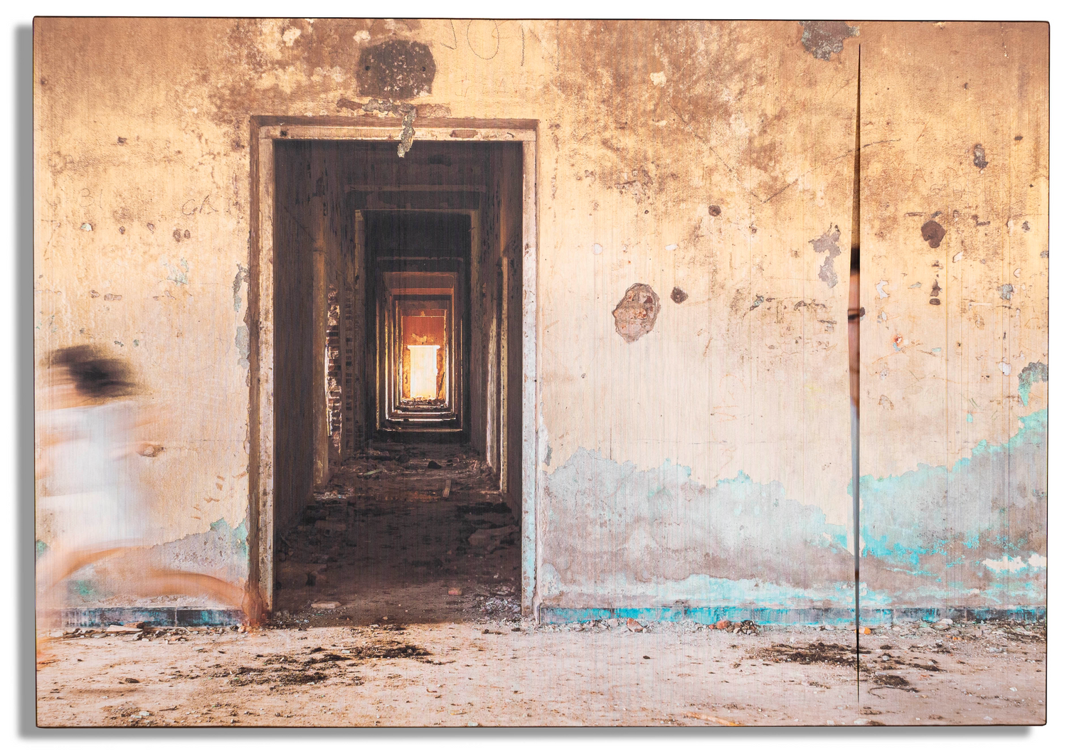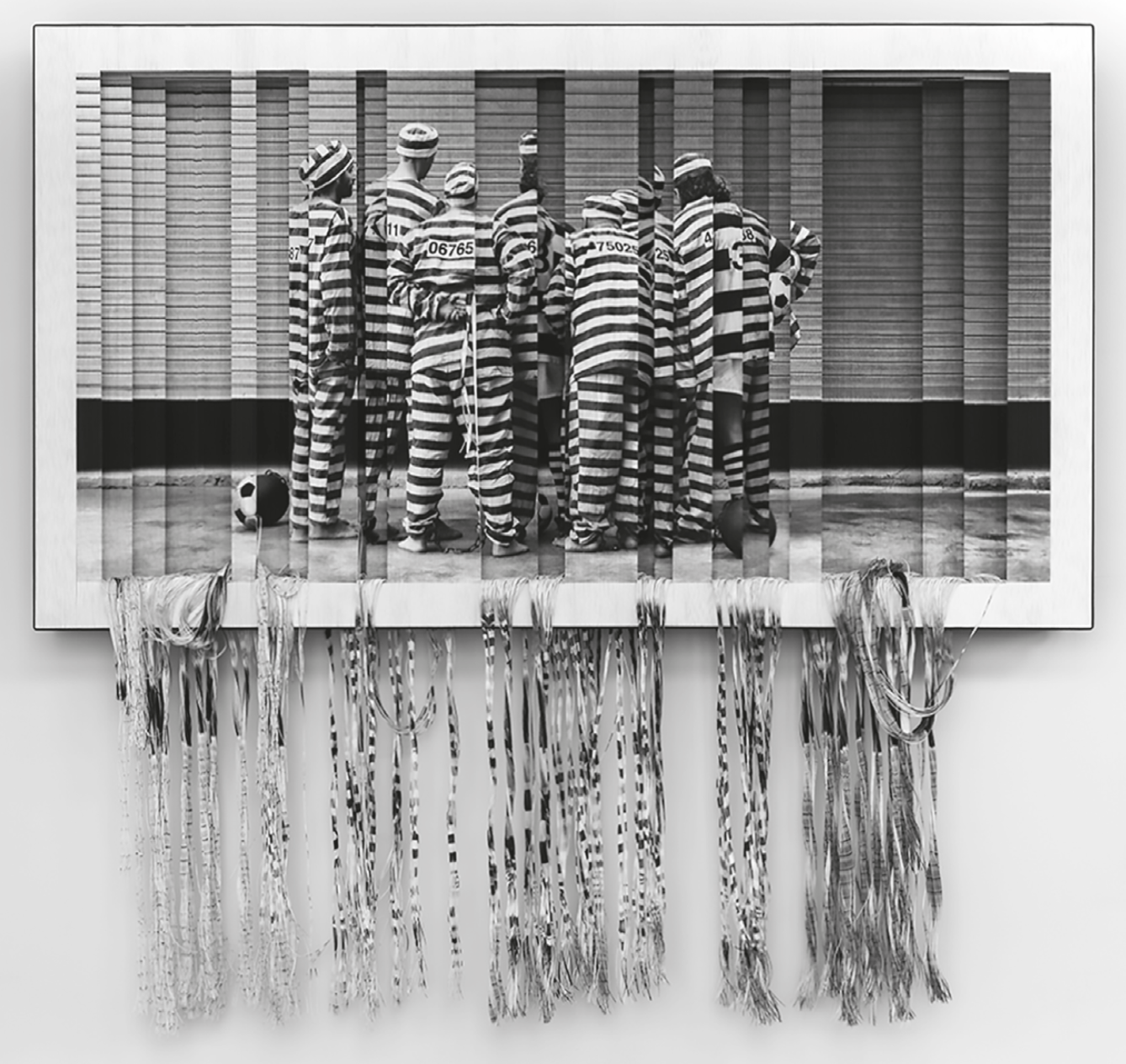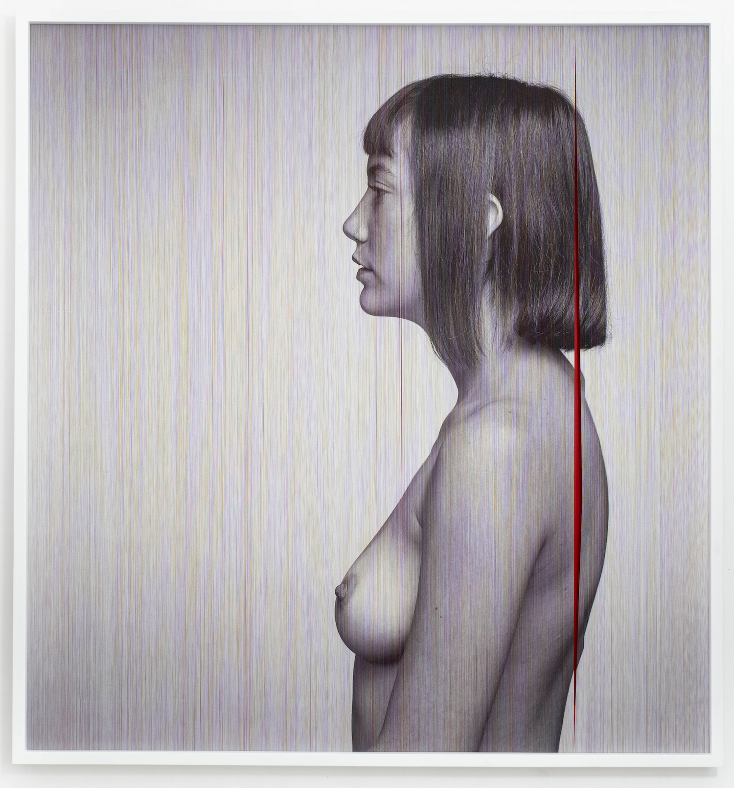 Photograph printed on manually intervened acid-free cotton threads, mounted on aluminum and wood